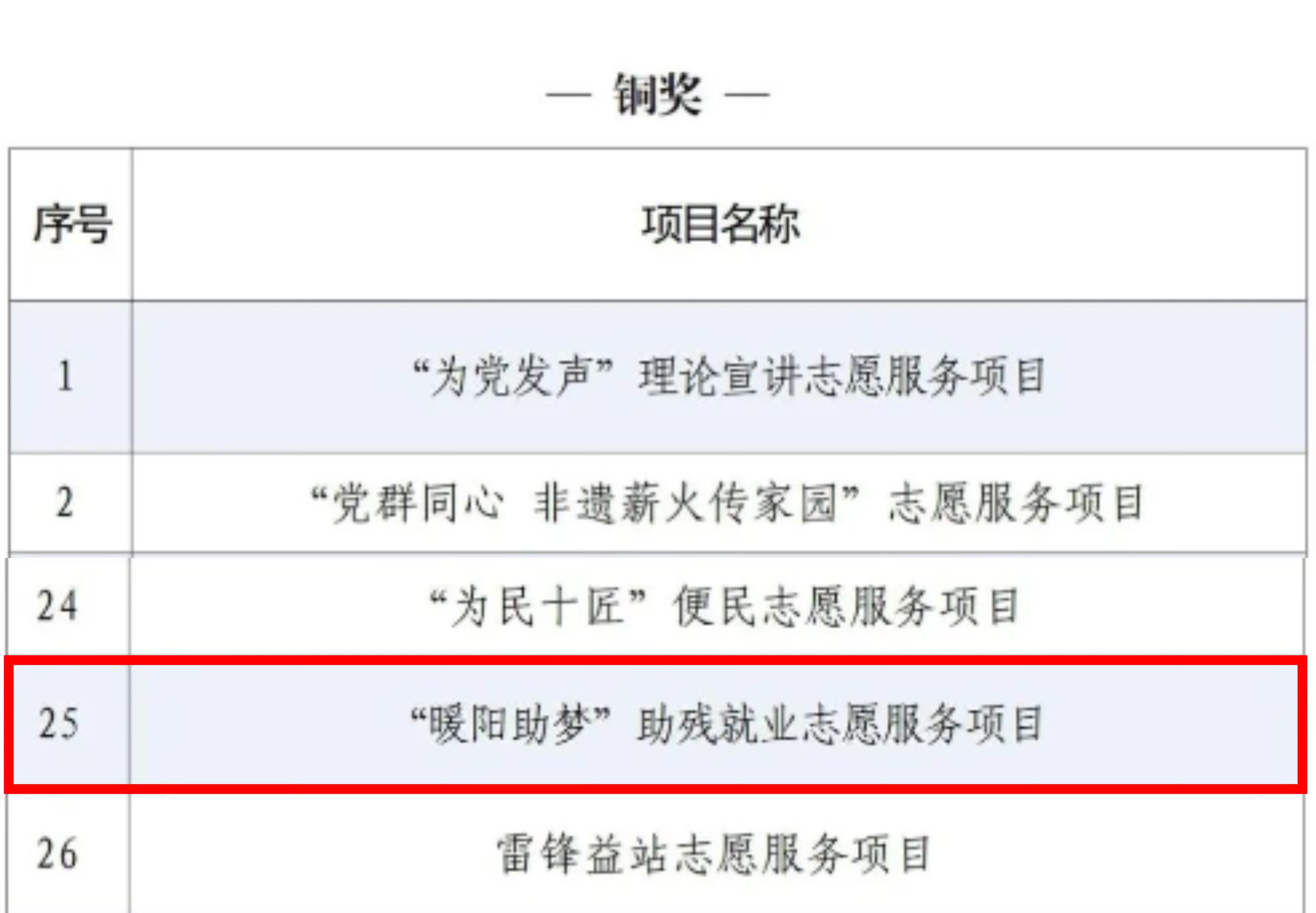 近日,由省委社會工作部主辦的2025年山東省志愿服務項目大賽獲獎名單公布,省殘疾人就業指導中心申報的“暖陽助夢”助殘就業志愿服務項目,從全省近1300個參賽項目中脫穎而出,榮獲銅獎。
