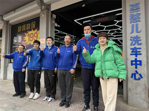 在實地考察深圳“喜憨兒”洗車項目后,崔永蘭成立了青島首家“喜憨兒”洗車中心。“洗車行業(yè)對技能要求不高,經(jīng)過培訓的殘疾青年完全能夠勝任,在就業(yè)方面也比較適合這一群體。”據(jù)崔永蘭介紹,為了讓青年們能夠順利上崗,她和團隊將車分成8個區(qū)域,具體工作分工明確,專職老師耐心地指導他們反復練習。如今,已有10多個春雨中心的青年在這個崗位上發(fā)光發(fā)熱,累計洗車3700輛。這不僅是一個就業(yè)項目,也是一個讓殘疾青年重拾尊嚴、融入社會的橋梁。