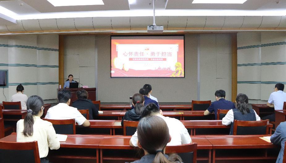 9月24日下午,省殘疾人就業指導中心組織開展黨課教育活動,中心黨支部副書記、副主任霍軍紅為中心全體人員作題為《心懷責任 勇于擔當 》的授課。